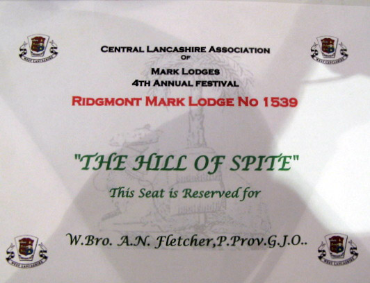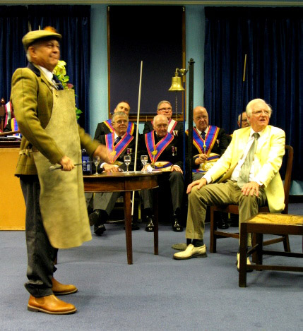 The PGM entered accompanied by his Deputy PGM W.Bro. Geoffrey Lee PGJD, Acting Prov Grand Officers and distinguished Grand officers, the WM Bro.Peter Beamish offered the Gavel which on this occasion was quickly returned as Keith said he was happy to leave it in the hands of the WM so that he could sit back for once and looked forward to enjoying “The Hill of Spite” the Central Lancashire Associations Festival production by the Mark Players Theatre Company. (now taking bookings for Christmas). The Lodge was duly called off and the story began, well what can I say you had to be there to believe it, what great fun it was, several stars were born this night, Peter Schofield as Joseph Ridgeway, Clive Butterworth as the Butler and Ivan Millington as the local constable PC Guyler. I believe both The Palace in Manchester and The Plaza in Stockport are trying to head hunt them for this year’s Panto’s. | |||