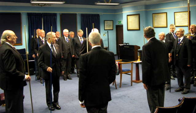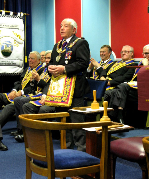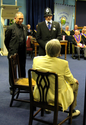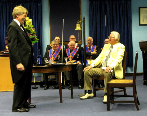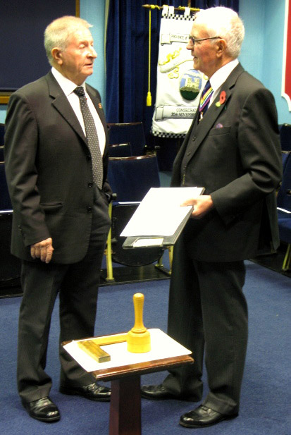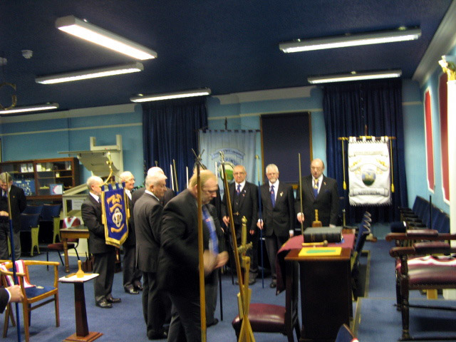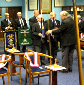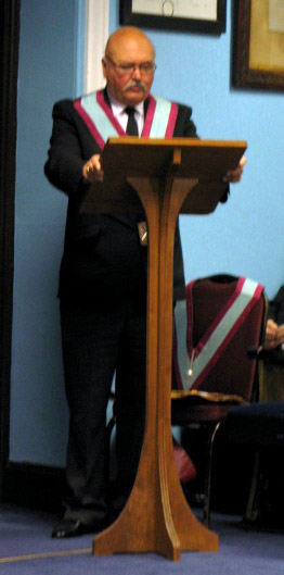 Now as to the evenings business, the Lodge was opened on time at 6pm and as this was an Emergency Meeting there was none of the usual housekeeping to be done, the knock was sounded and the Provincial DC W.Bro.Dave Emmerson announced that the Prov Grand Master R.W. Bro. Keith Alan Beardmore was without and demanded to be admitted which of course the WM and all present were delighted to comply with. | |||