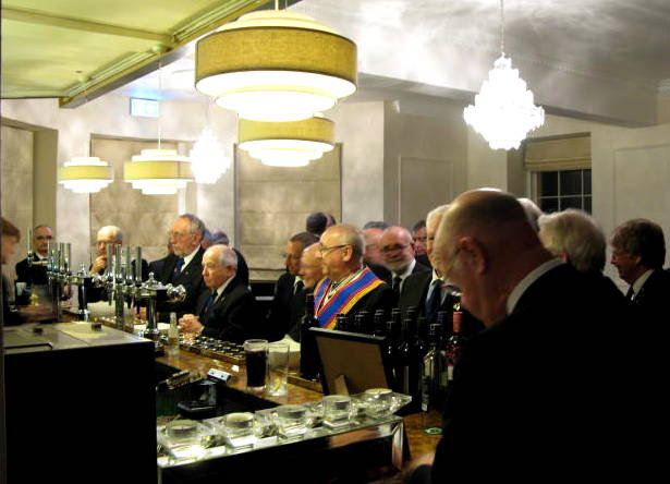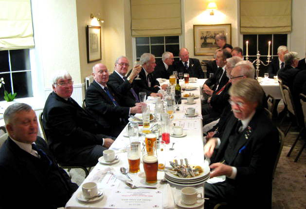 Following long acclaim the players retired, the props were removed and the Lodge was restored to good order, it was then called back on, the PGM gave sincere thanks to all who had taken part for the many hours of practise it must have taken to create the play for us all to enjoy, a collection was then taken for the Charities and it was time for the PGM to retire from the Lodge accompanied by distinguished Grand officers and Acting Prov officers. The Lodge was then closed in due form and everyone made their way to the bar for some liquid refreshments before taking their allotted places at the Festive Board. An excellent meal was served up ending with a delicious trifle which I just couldn’t resist, tables were laid out around the room with cheese and biscuits on a help yourself basis, now that’s a first, really it was superb and the staff were all first class. | |||