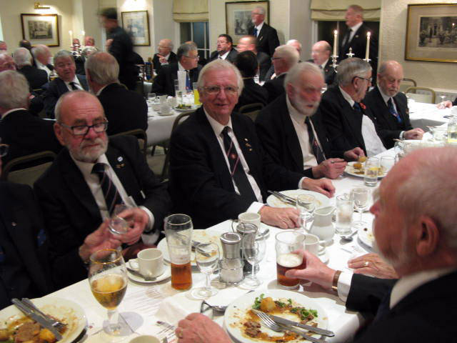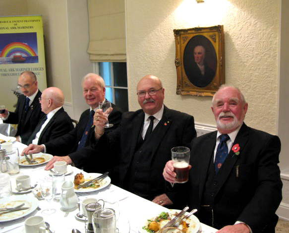 Lots of happy chat during the meal, as to the Mark Masons around me, I had never met before but we chatted just like we were lifelong friends, following on from the meal there were the usual Toasts and interesting Responses, it was especially nice to see several stand on the Toast to visiting WM’s, the only thing missing was what has become usual at these Festive Boards a Mason who as yet hasn’t seen the light and joined us in this the Happy and Friendly Degree, the final Toast as always was delivered by the very hard working Prov Tyler W.Bro.Ernie Gavan and yes just in case you were wondering we did get treated to our usual joke from our PGM during his response, if only somebody had recorded them all we could have put them out in a collection. (or maybe not) only kidding. | |||