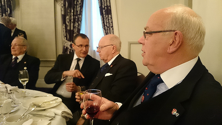 Dinner or was that afternoon tea was attended by some 24 West Lancashire Mark men and was of excellent quality, and the wine flowed freely, and I spotted the PGM RW Bro Keith doing his David Bailey impression which he stated were for the West Lancs web pages. I then proceeded to take a couple more pictures. |
