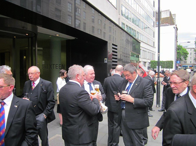 I started off from home at 8am getting to the train station in plenty of time to get the early train to London arriving at Euston by 10.40pm.  I arrived at Great Queen Street and put my bag in the cloakroom and went to meet the others from West Lancashire. The meeting started on time at 1pm and the business grand lodge commenced in the normal efficient manor, with three investitures and some 400 acting officers first appointments and promotions taking up most of the allotted time, with our own James Anthony Harrison PGM in the craft and a past leader in the Mark getting the acting rank of Grand Junior Warden. The Whole of the rest of the world seemed to be represented with attendees from Hong Kong and South Africa to mention but two being represented.