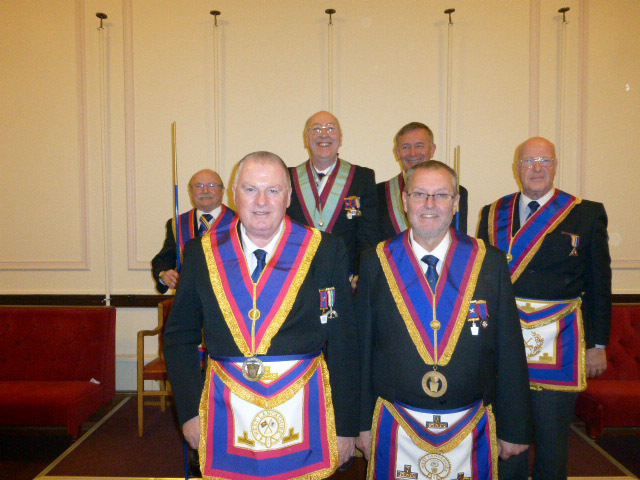 The Worshipful Master WBro Karl Brennan opened the meeting and got the lodge business out of the way before the procession of Grand Officers; Acting Provincial Grand Officers and APGM entered. With the salutations done it was time to fill the chairs for the purpose of installation. |