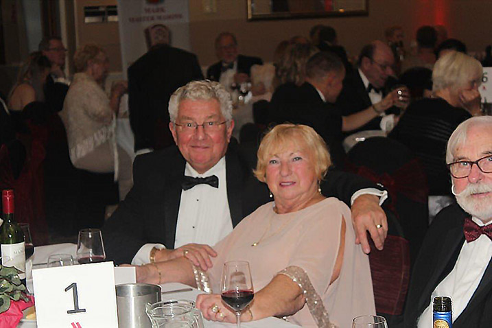 At 6.30 we started to be introduced to Keith & June Beardmore as we entered the dining room, and then our Provincial Grand Master formally welcomed the assembled audience ahead of a superb meal, and plenty of liquid refreshment. After dinner we had a few great jokes from Keith, and the dancing began after a presentation of flowers to Mrs June Beardmore by the Provincial Wardens, for letting Keith lead our Province, and to Sandra Berkley to thank her (and her husband Giles, who just does as he is told!) for all the work in organising the Ball. |