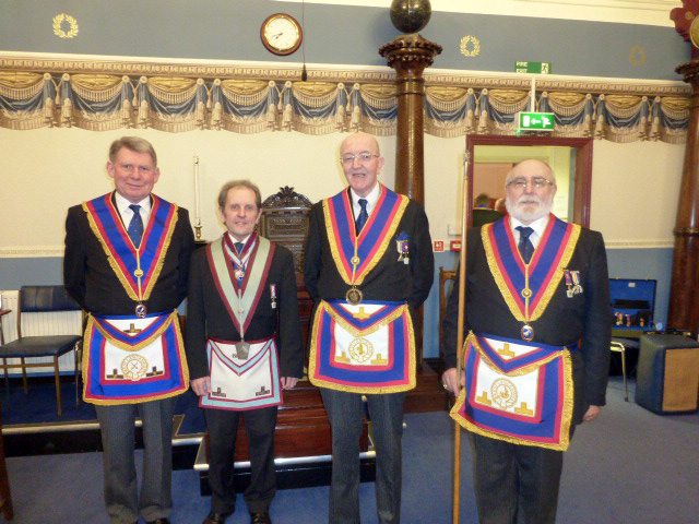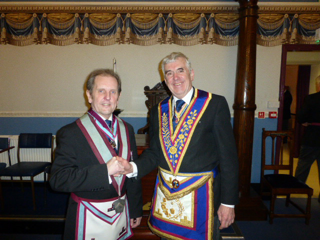 Then WBro Frank Cooke PGJD took the Senior Wardens Chair and WBro Alan Fairhurst Prov GJW took Junior Wardens chair for the installation.  WBro Ian Welsh PPrGJD remained at his place as Inner Guard.