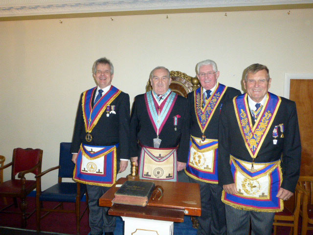 WBro Stuart Boyd; WM Bro Jimmy Roberts; VWBro Fred Hargreaves and WBro William Cropper |