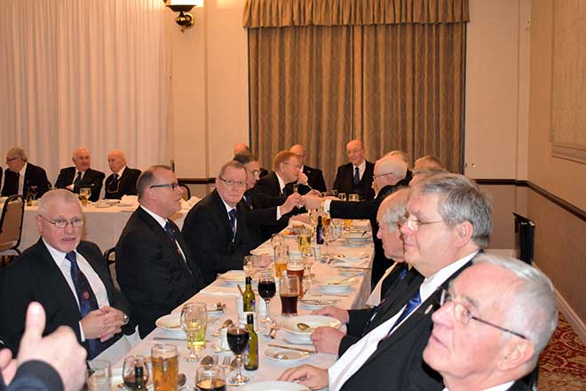 Following the formalities an installation banquet was held to celebrate both Maurice and John having taken the helm of their respective lodges. |