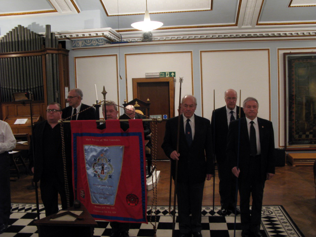 Following the First Rising it was time for the PGM to take his leave, the Prov DC called his officers to post and once assembled they accompanied him from the lodge in fine style, here shall we say normal service was resumed, in no time at all the meeting came to an end, it had taken a number of years to raise the funds to purchase the very special  banner but I’m sure that everyone present thought it had been well worth the effort and would be treasured by members for years to come.