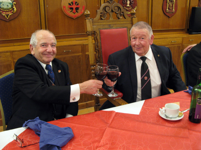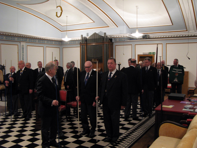 Before too long I woke up and thought where am I (only kidding), Mark Masons began to arrive from all over the county and the Team members under the guidance of David (don’t leave your wands in the lodge) Emmerson the Prov DC began this very important practise session. Once he was satisfied that all was well everyone relaxed and went to talk over the evenings proceedings. I myself had a very interesting and friendly chat about the Highlands and one of my favourite places the island of Islay with John Bruffell from Corinthian Lodge No.1052 a Mason I had never met before, at the Social board he was kind enough to have supplied me with a large drink whilst I was away taking photo’s, that’s how you can tell your at a Mark Masons meeting.