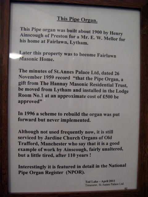 Another special meeting to look forward to tonight, one that is a first for me and probably for most of the Brethren attending also, a Mark Lodge Banner Dedication. Very windy outside so I didn’t want to get the old Opel out too early, fired up you know who Garmin and Snoopy, case in the back of the car complete with marmite butty and a bottle of Dandelion and Burdock just in case of emergencies. Set off in good time up the ramp on to the M60, light traffic, on to the M61, left on to the M55 and by now it felt like driving through falling snow, there were so many leaves blowing about and hitting the screen at times I could hardly see, no matter ploughed on, came off at the correct junction and before I knew it there I was in Garden Street. I spotted Ernie Gavan the Prov Tyler, he was as is usual  unloading all the equipment which he carries around for Team visits, he really is a nice guy and works very hard for all of us, I shouted “Oy Ernie any parking” he smiled and said “this is Lytham” now I know what he meant.