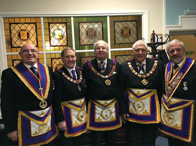 The festive board was a typically happy Mark event, with Geoffrey Lee thanking the 10 Grand Officers, and 8 reigning WMs for their attendance. He thanked John Forster not only for all his hard work today, but on his efforts as Special Representative of the ProvGM.  Geoff thanked Mike Casey who stood in as Secretary to cover for Geoff Crosland who is recovering from heart surgery.  Mike also produced the superb table menus and place cards.  Geoff then thanked the DC Bill Swindlehurst and Provincial DCs Arthur Robinson and Raymond Pye.
