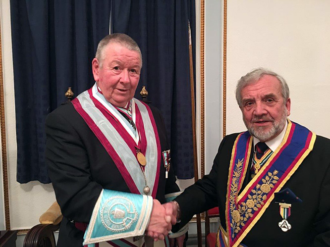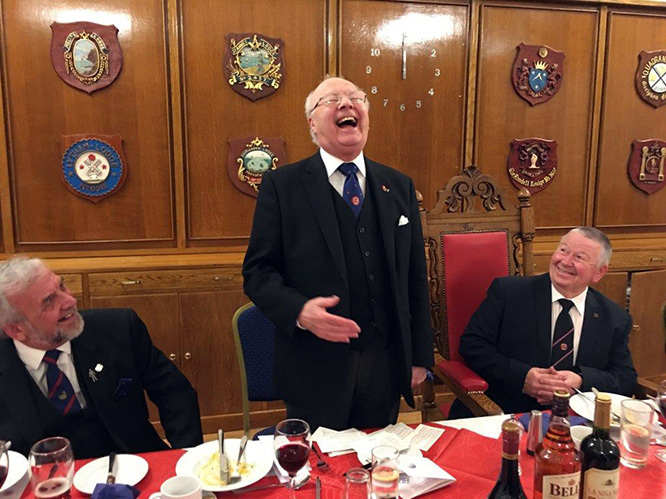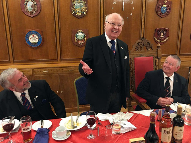 Alan Davies then proposed the toast to Ken turner, newly installed as WM, and Ken responded by thanking him for the manner in which he had been installed.  Ken also mentioned his wonderful wife Barbara, who is undergoing treatment at present, and all present wished his partner of 28 years all the very best for her recovery.  Ken finished by thanking all present, and wished us a safe journey home, after what had been another great Mark evening.