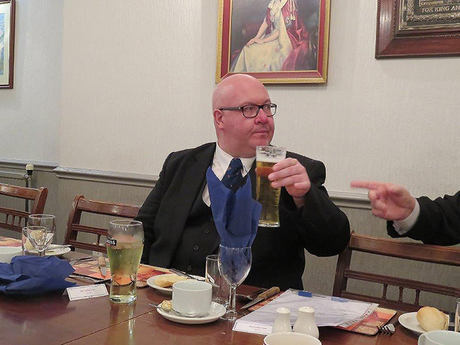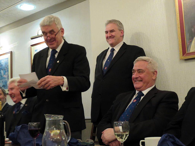 Paul Snape; Derek Gaskell; Andy Whittle during toasts at festive board