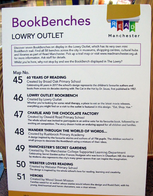 List of benches on display |