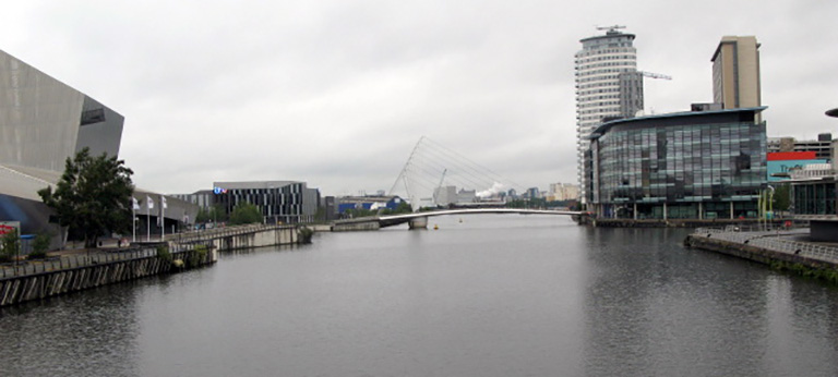 Built on the site of what was Manchester Docks, (most of which was actually in Salford) this is a really interesting place to visit, the area formed part of the Port of Manchester which began life back in 1894 until its closure in 1982, in its time it received cargo from all over the world which made their way up from Liverpool on the Manchester ship canal. During its peak in 1948 it was reported to be the countries third busiest port, the real decline began in the early seventies largely due to containerisation and the increasing size of the freight ships which could no longer navigate their way up the canal. In 1984 recognising the need to redevelop the area Salford City Council purchased the docks using a derelict land grant, proposing complete reclamation and development of the area for commercial residential and leisure us. |