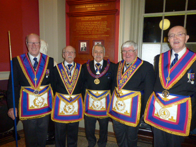 The University of Liverpool Mark Lodge No 1062 meets at the Liverpool Medical Institution and on Monday 20th February they held their Installation meeting. Worshipful Master WBro John Price P.PrGJW opened the meeting in a packed lodge room and welcomed the Assistant Provincial Grand Master VWBro Michael Clarke PGJO to the Lodge. |