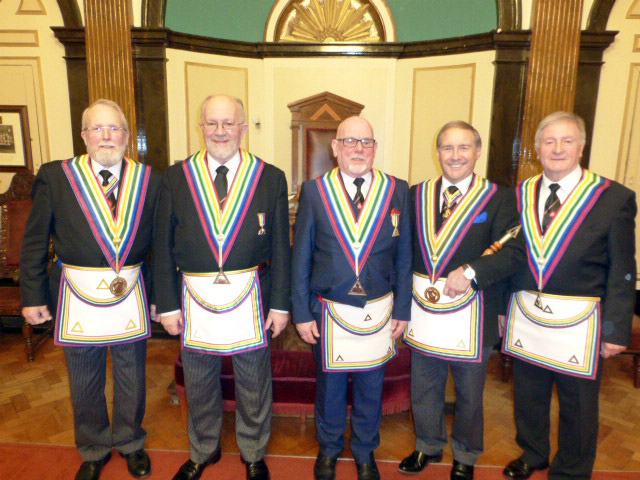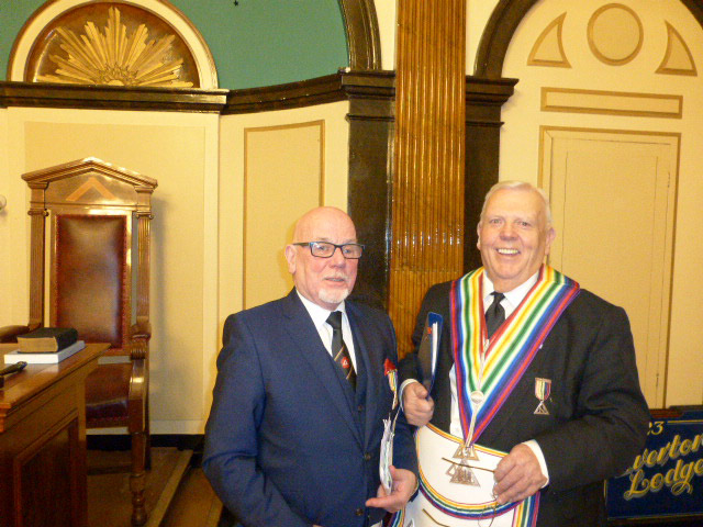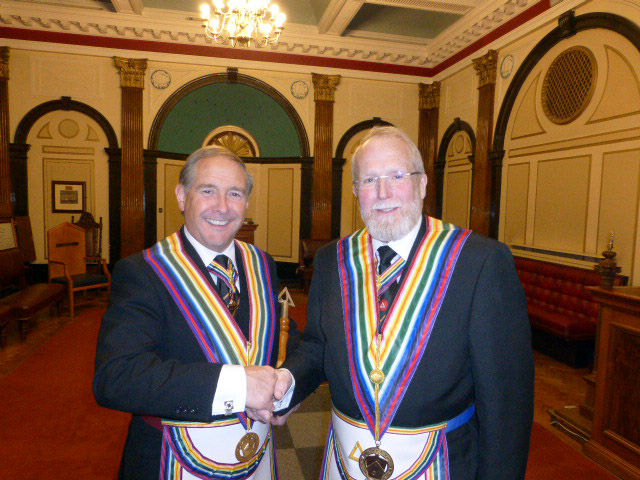 With this completed, it was then the turn of WBro Mike Winterbottom, Prov RAMGR, and the PGM’s Special Rep for the Liverpool Mark Lodges to deliver a first class address to the Worshipful Commander. When WBro Ian Nairn turned down the chance of doing the ceremony, it did not mean that he got out of doing any work for it fell to WBro Nairn to present the exposition to the brethren which he did faultlessly and with feeling. At the close of the installation ceremony WBro Ian Nairn congratulated WBro Chris Hamilton on behalf of the PGM on becoming the Worshipful Commander and WBro Ian Elsby on the excellent job he had done as installation commander. |