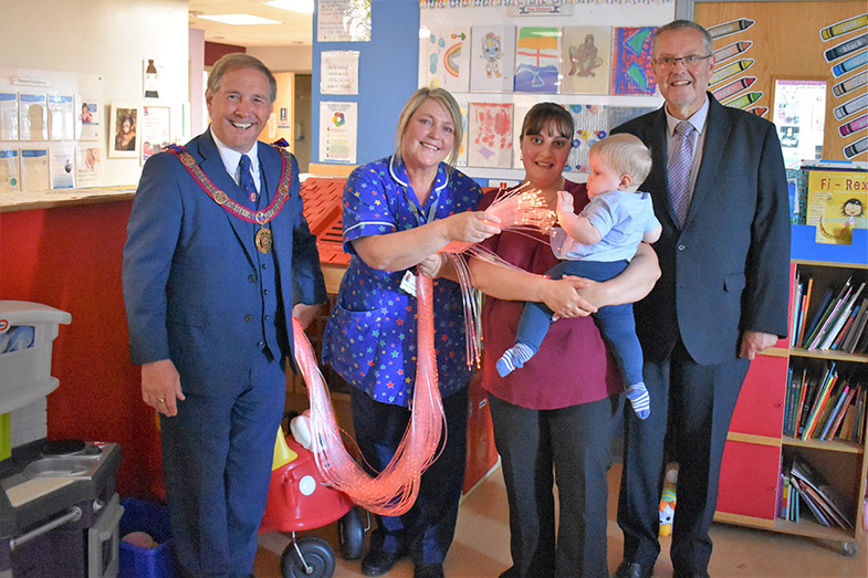 The lights having been purchased Daniel his mother Anna and proud grandfather Tony along with Giles and Sandra Berkley, special representative Stuart Brackstone and Jim Richards of Jubilee Mark Lodge attended the children’s ward to present the lights with your northern correspondent tagging along to record the event. They were welcomed by staff members Lorraine Foster, Nicola Askew who is the Assistant Director of Nursing (Children’s Department) and Matron Heather Wood. |