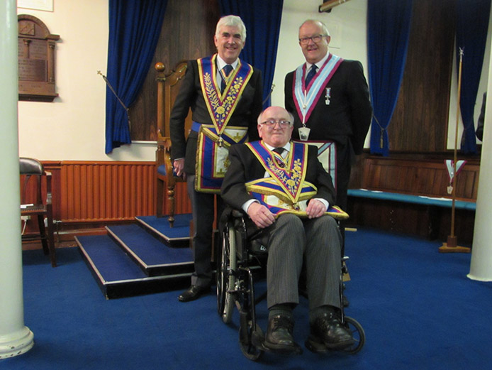 Due to the indisposition of the Worshipful Master  Worshipful Brother Don Hesketh the Immediate Past Master took the master’s Chair and opened the Lodge at 6:30 pm. and concluded the administrative items on the agenda. On a report the Provincial Grand Director of Ceremony Worshipful Brother Dave Emmerson Past Grand Senior Deacon announced that The Right Worshipful Provincial Grand Master was outside the Lodge and he required admission. The Right Worshipful Provincial Grand Master entered the Lodge accompanied by Grand and Provincial Grand Officers and was introduced to the acting Worshipful Master who invited the Provincial Grand Master to occupy the master’s Chair.