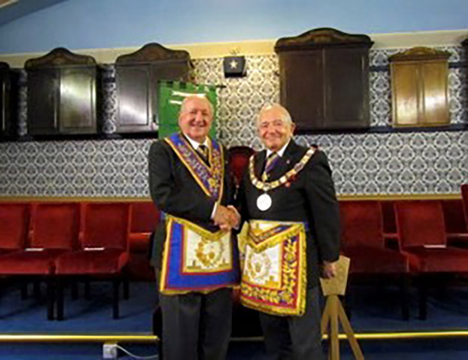 Everyone then settled back with a warm glow inside thinking over how pleasant the whole presentation had been. In what seemed like no time at all it was time for the PGM, Grand and Provincial Grand officers to retire from the Lodge and on this occasion in a really nice gesture the celebrant VW Bro. Eric was accompanied at the head of the procession by the PGM, an excellent end to a memorable ceremony evening. | |