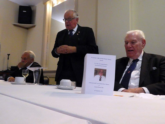 On the 21st September 2019 at Garston Hall, the Provincial Mark team attended a special meeting of Saint George Mark Lodge 553. This meeting was to celebrate an evening with VW Bro. Eric Hughes PGJO, who has reached a milestone of 50 years in masonry. | |