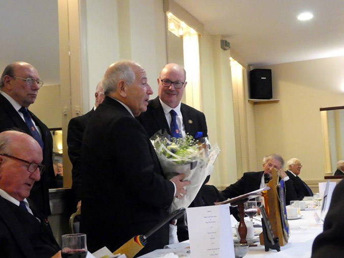 Special thanks must go to V.W.Bro Peter Connolly for present the toast to my health. It was both serious and humorous, and captured the spirit of the event perfectly. The evening would not have been possible without our Prov. G. Sec. W.Bro John Bicknell, our Lodge Secretary, W. Bro. David Alan Withey and the Rt. W. P. G. Master’s Special Representative, W. Bro. Derek Alan Horrocks. I appreciate all they have done to make it such a special night. | |