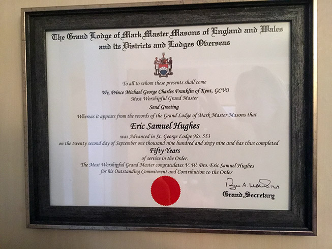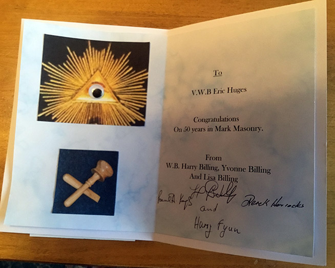 Celebrations of VW Bro. Eric Hughes PGJO 50 years in masonry |