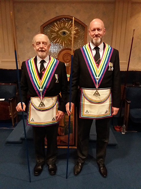 W Bro Brian Sharples Prov RAMGR presented Bro Gary and the usual questions were asked and answered. Brethren below the rank of an Installed Commander were asked to withdraw and Bro Gary Fisher was installed into the Commander’s Chair. I hope I did justice to what is a beautiful and thought provoking ceremony, one of the nicest Installation ceremonies of all the orders and degrees in Masonry. |