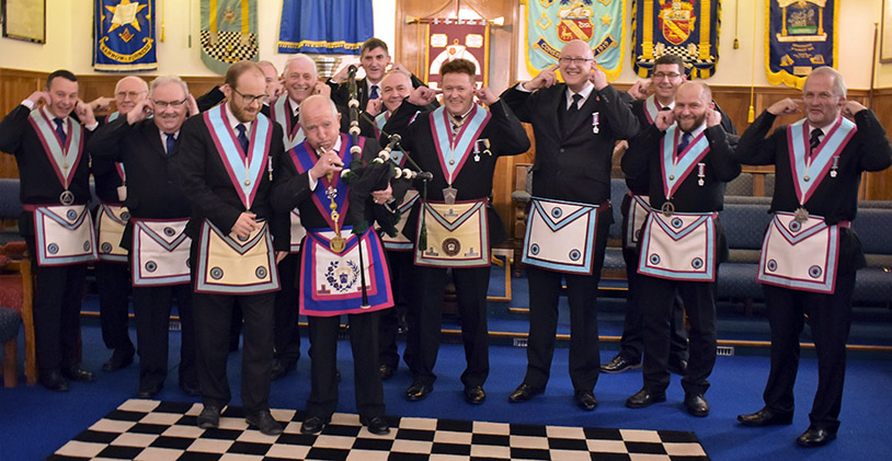 The recession of Keith from the lodge was again accompanied by music from the lodge pipe major. The sound of the bagpipes is quite appropriate as the lodge which was founded in 1870 under the auspices of the Grand Chapter of Scotland when it boasted the number 24. It was in October 1872 when it became a member of the English constitution. So, although the official 150th of the lodge will be celebrated in 2022 this masonic year will be the 150th since its original inception. |