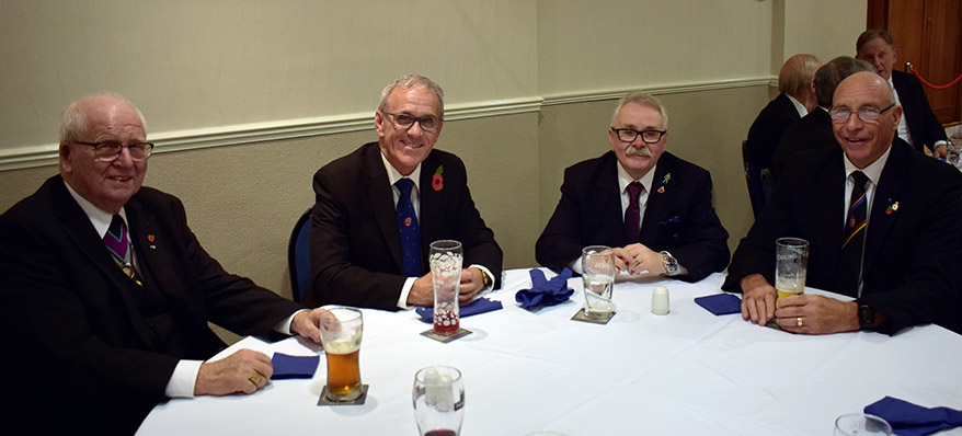 After being welcomed by WM Peter Schofield Keith explained that his was a private visit to acknowledge the fact that lodge secretary Kieron Mullan was his present Junior Warden. Adding his support was Senior Warden David Rigby along with acting officers Jim Richards of Jubilee Mark Lodge and Nigel Higginson of Garnett Mark Lodge. |