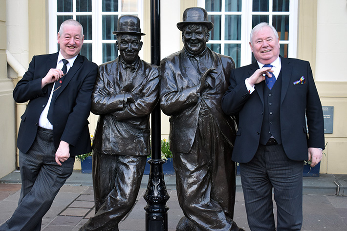Steve Gregory, Stan Laurel, Oliver Hardy and Peter Hegarty