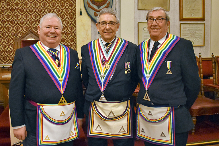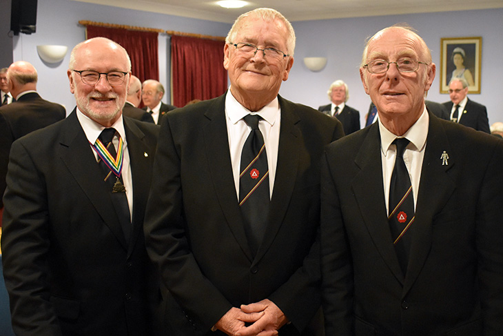 But I digress, what you really want to hear about are the details of the meeting. The work of outgoing Worshipful Commander Russ Greenhow in installing John Torrance in his stead was excellent. He had obviously been burning the midnight oil as he delved over the pages of the ritual book. All the effort proved worthwhile as his work was a delight to listen to.