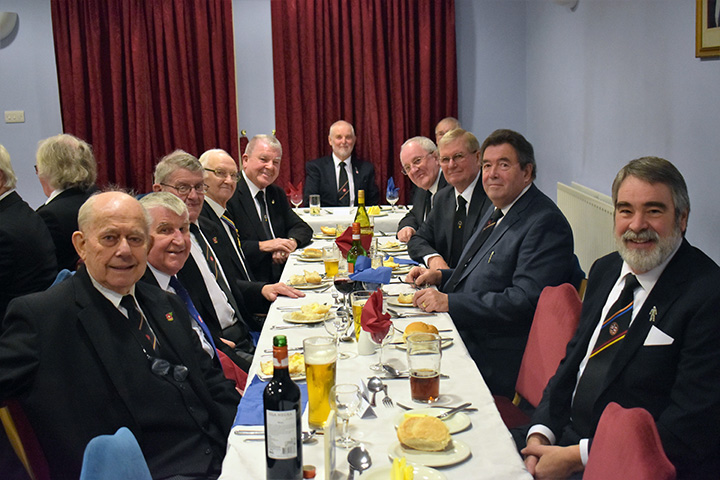 Following the ceremonial formalities the action transferred to the dining room where a three course meal of chicken and leek soup, roast chicken and sticky toffee pudding was very well received.