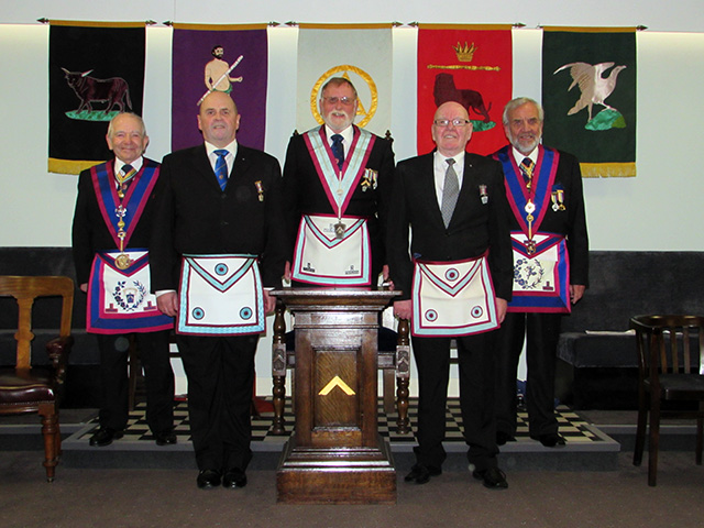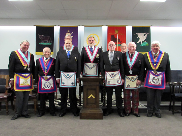 It isn’t often a lodge finds itself in the enviable position of having two Brethren from the same craft lodge wanting to join our wonderful order on the same night, but such was the case in January when Fylde Lodge of Mark Master Masons advanced two of the brethren of Temperance Lodge which hold their meeting in the Masonic Hall Adelaide Street Blackpool. Our Right Worshipful Provincial Grand Master Keith Alan Beardmore was in attendance at a meeting in Adelaide Street when he was approached by Brother James Spiers Paterson and Brother Brian Montgomery both of whom were desirous of joining the Mark Degree. Rt. W.Bro. Beardmore had no hesitation in agreeing to propose them both for membership of Fylde Lodge. |