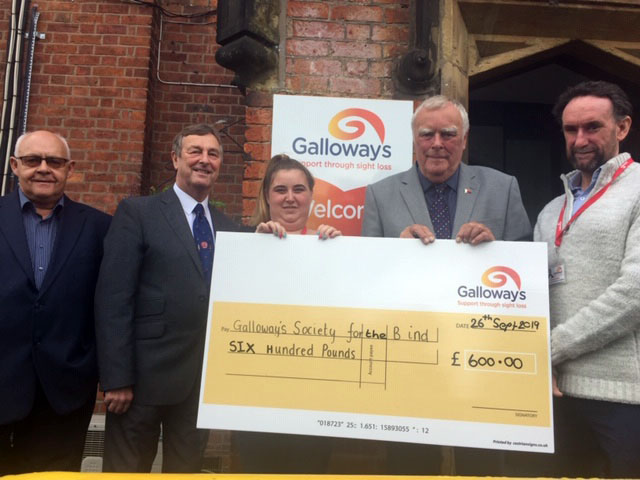 At a very special meeting to celebrate 50 years of distinguished service to the Mark Degree, W.Bro. Barry Wright, P.G.St.B., was presented with a cheque for £600 in favour of Galloways Society for the Blind. |
