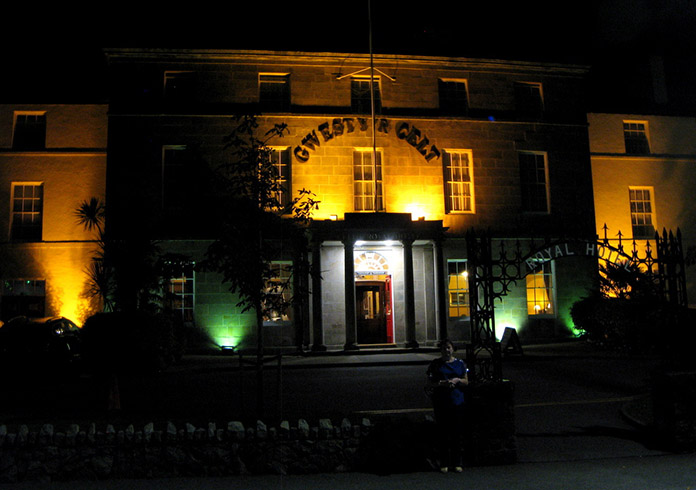 After driving miles round we got back on the Expressway (ha har) and there was the sea, we spotted a little cafe called the Puffin or was it Penguin anyway in we went for a nice snack and a coffee to be told I’m sorry but we close at four and it was now five minutes to, I can do you a coffee but you’ll have to take it outside oh and we have crisps and a few cakes left, ok that will do. We sat outside enjoying the afternoon sun and a great view over the sea, vehicles continued to pull on to the car park only to find the cafe closed. The Celtic Royal Hotel was very easy to find, we pulled in, parked up got our keys went back for the luggage, made our way up to the very nice room and collapsed on to the King sized bed, it really was American King sized. Ahhh. Made it. |