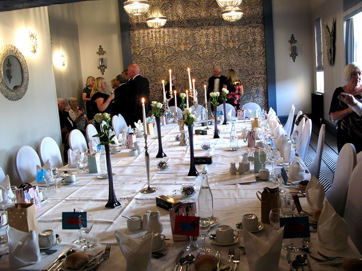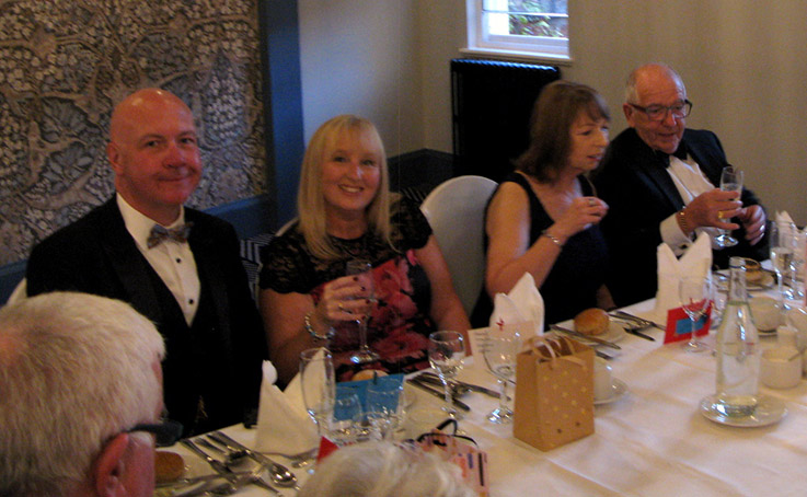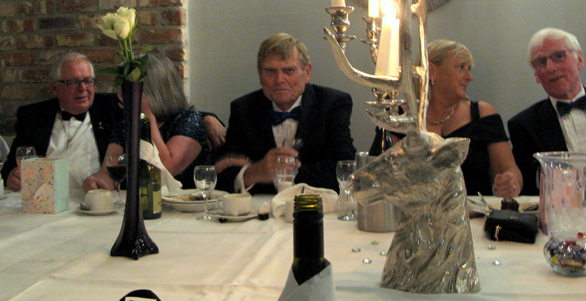 After a great day out we slowly walked back to the Hotel and yes had forty winks before getting ready for the Gala Dinner, made our way downstairs and found the room for the event which was dressed up in fine style including just one huge table where everybody could be seated together, I thought it was brilliant. Following canapé’s and drinks we took our seats to be served the individual meals we had chosen previously and can I say as before the staff were excellent. What a great time we all had, following the usual Toast to the Queen we had a couple of excellent welcoming speeches from our PGM Keith Beardmore and then Eric Drinkwater who along with his wife Tegwyn are the main organisers and driving force behind the West Lancs Grand Stewards Mess. |