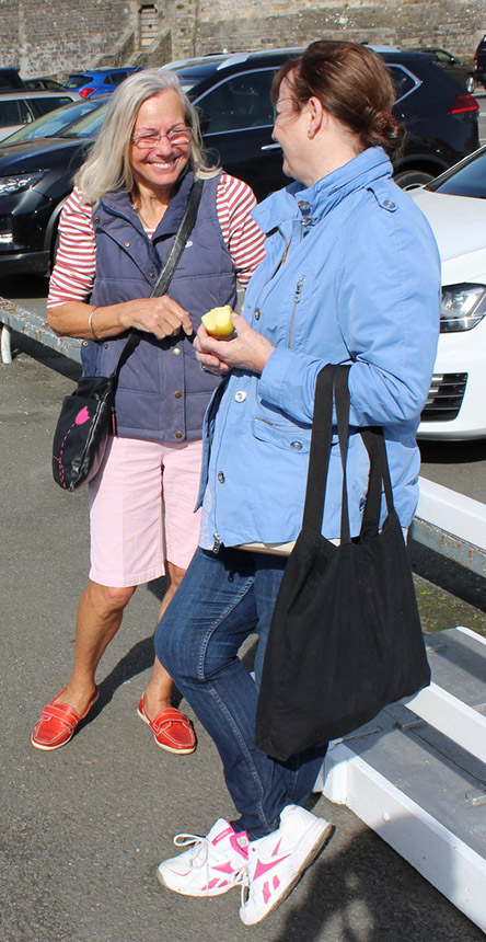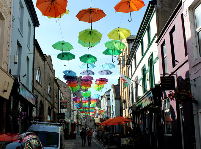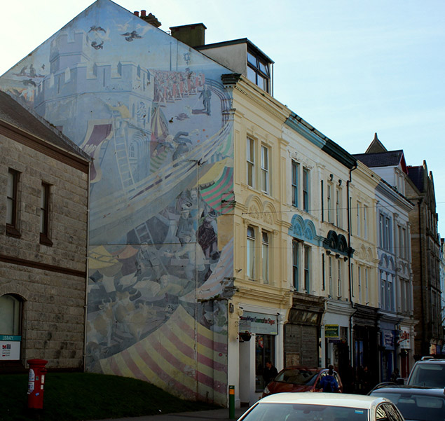 As I mentioned on the last report got up early, had a hearty breakfast and set off to explore, first thing we came across was a large wall mural, I think it had started to fade but it may have been that colour in the first place, down some great narrow cobbled streets we then came to the street of umbrellas, now that was different. Coming out at the top end we came into a large square complete with several statues, market stalls, cafe’s, a couple of pubs an ice cream cart and best of all a Donut Stand. A really busy area full of happy voices and laughter but we had to move on down towards the sea alongside the castle ramparts, lots of great views on the waterfront where we sat for a while. |
