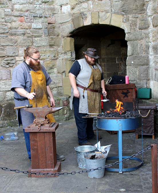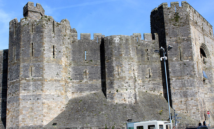 Next it was on to the Castle, paid up went inside to be confronted by the Tyler and Inner Guard, seemed like nice boys, it was as spectacular inside as it was outside, walked up to the disc of Welsh Slate which was the site of the Investiture of the Prince of Wales in 1969, very impressive. There was a display of Archery which you could take part in, and a blacksmith and his assistant both big men, which I guessed you would need to be looking at the size of the hammers they were using. Spent a couple of hours having a good look round, the entrance is known as the Kings Gate which originally had a drawbridge, in the North East Tower at ground level the whole story of the Castle could be seen in light and sound, very interesting. |