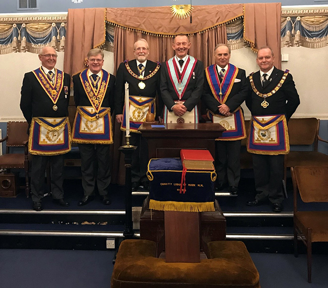 Monday 18th February was the installation of Bro Andrew J Hall as the worshipful master of the Lodge of Charity of Mark Master Masons no 935. With Very Worshipful Brother G. H. Lee Deputy Provincial Grand Master unable to attend, Very Worshipful Brother Bro I D Nairn was able to take his place for the evening.