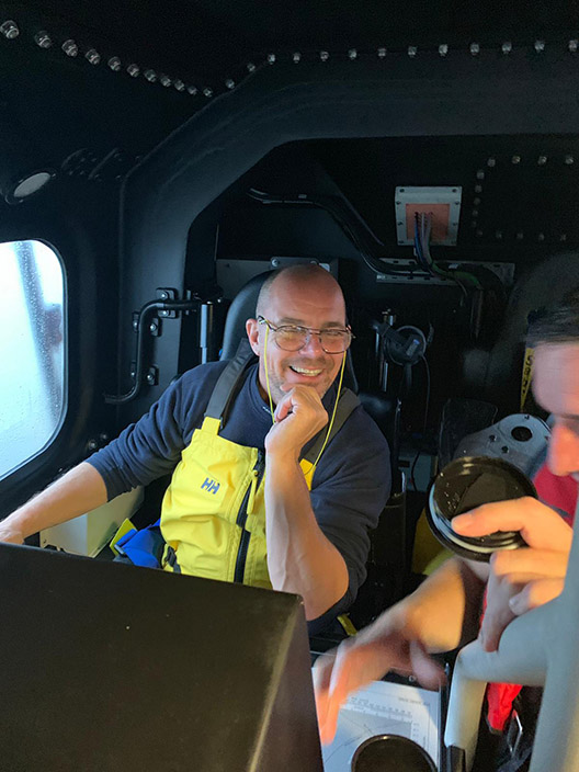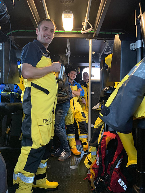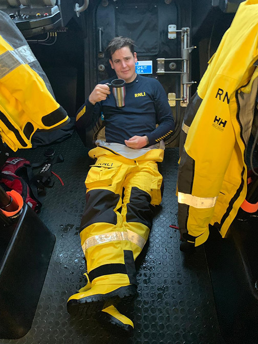 Chris Penrice with his hot drink before sailing for home (photo RNLI / Chris Penrice)