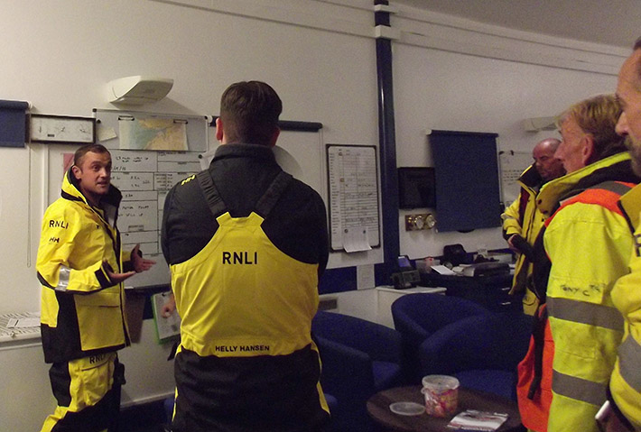 Coxswain Robin Baker briefs the crew before setting on 10th September 2019