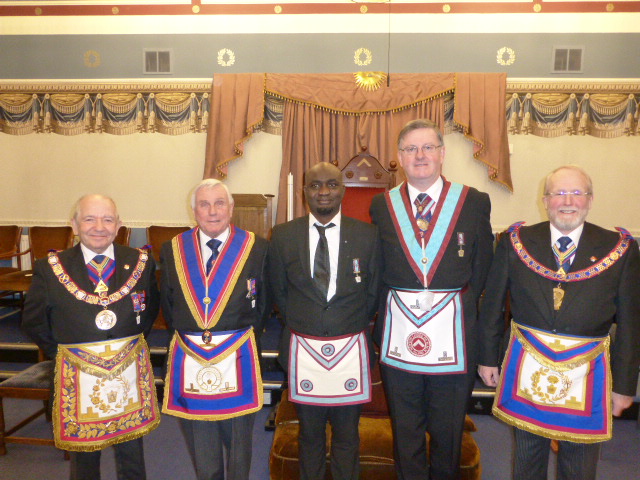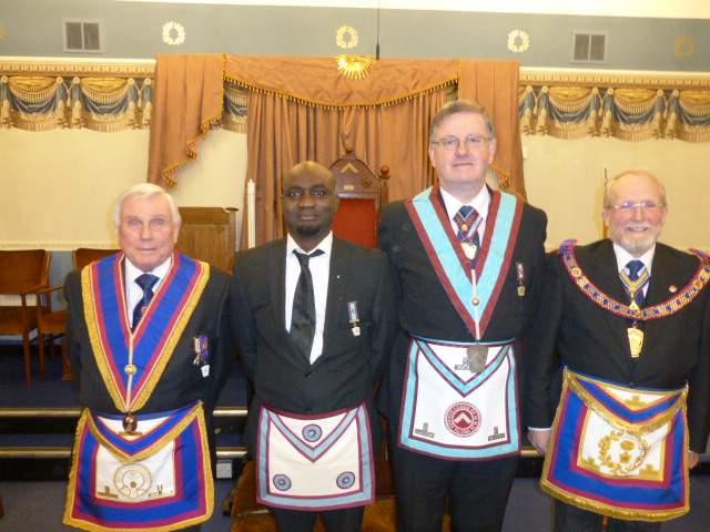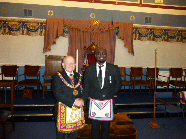 WBro Lucas Kelly ProvGJW was a lucky loser and once again got the Treasurer’s job. It was then time to welcome the PGM into the Lodge and after the greetings and salutations were done it was time to advance Bro Azeez Amosun. |