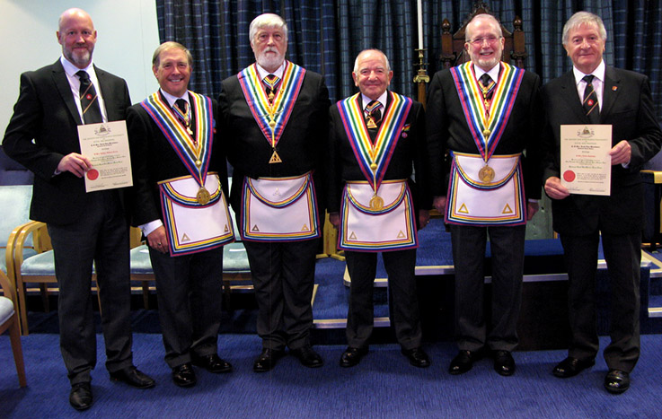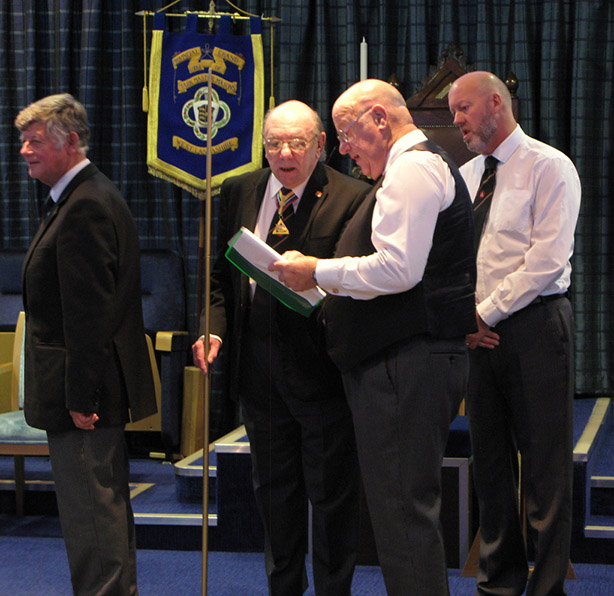 Next it was to Invest Recipients of Provincial Royal Ark Mariner Grand Rank, these were all greeted with loud acclaim. A great demonstration followed given by VW Bro. Ian Nairn PGJO of the “Nine Steps” taken during the Elevation Ceremony this was accompanied by a paper entitled “The Nine Steps of the Royal Ark Mariner Degree” from W.Bro. Ray Pine, excellent and that was it another great meeting was over.