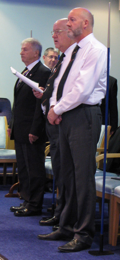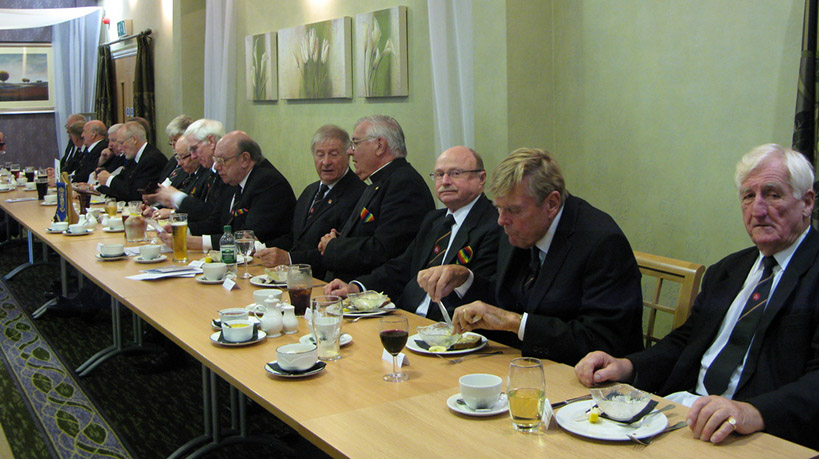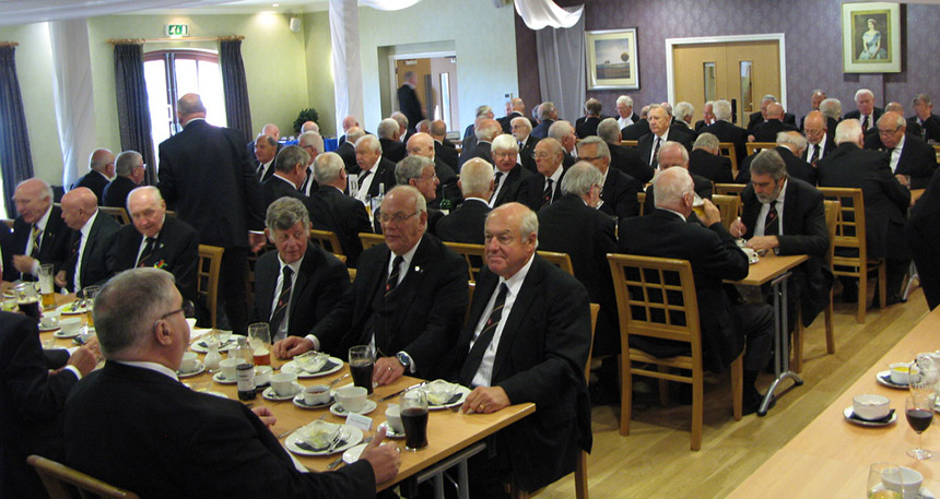 The Moorings is an Idyllic location set on one side of a large canal basin where lots of decorative barges tie up, the car park was well policed by several yellow coated Mark Marshalls who waved me through and it only cost me a fiver. (only kidding) Practise was just about to start another few minutes and I would have been relegated to the subs bench. It soon became obvious that a lot more chairs would be needed, if the RAM members would let the Province know if they were attending even if not having a meal it would help a great deal in planning especially now we don’t have the size of Leyland to rely on.
