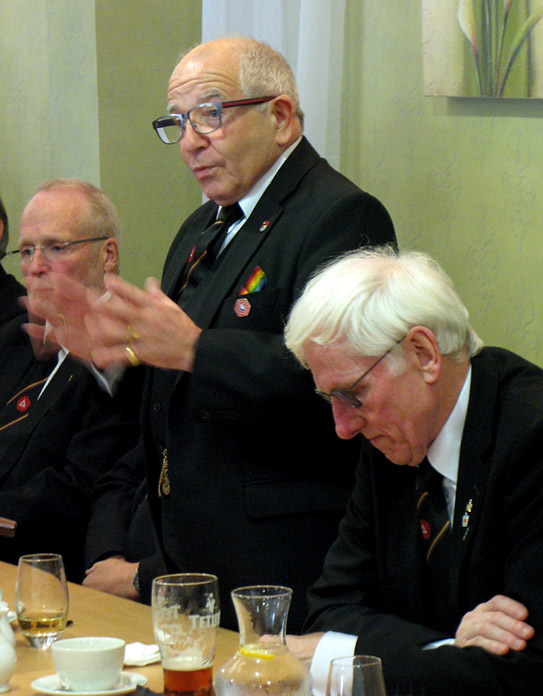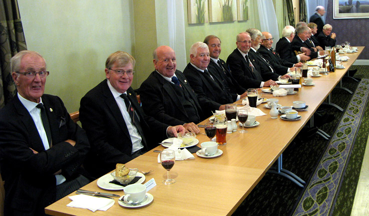 The Festive Board was well supported, an excellent lunch time meal was served up by very efficient and friendly staff, the usual Toasts and Responses followed but for once I’m not sure if the PGM gave us one of his award winning jokes or did I miss it ? I’m sure we will be treated to quite a few during this year’s Team visits. Ah well all good things must come to an end and it was time to say our goodbyes, I had great pleasure in wishing VW Bro. Eric Samuel Hughes PGJO congratulations on reaching his Fifty Years in Mark Masonry which was being recognised at St Georges Mark by the PGM and the Team on Monday next.