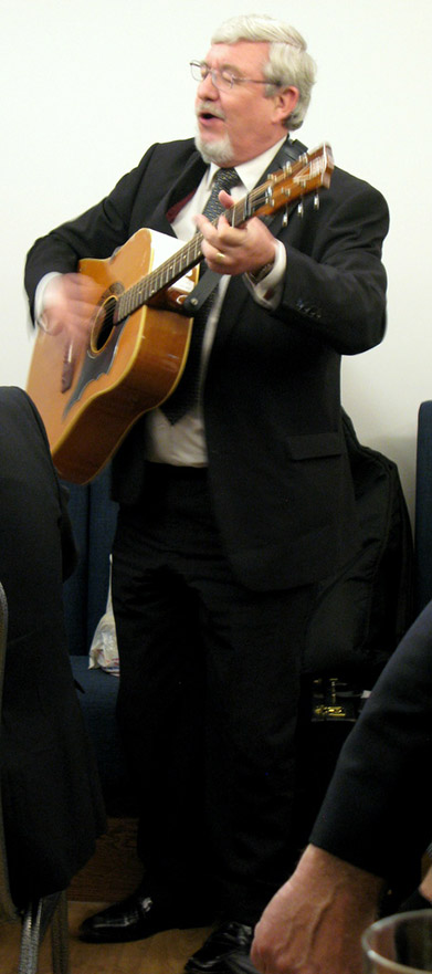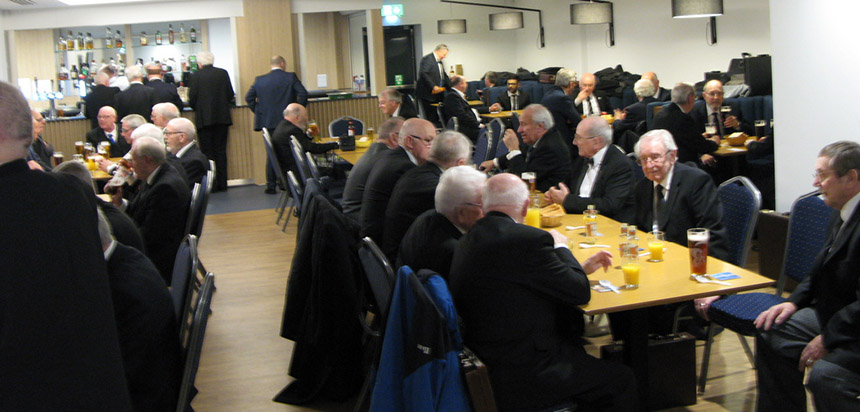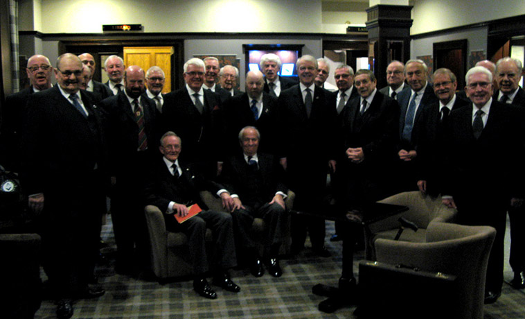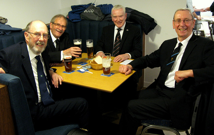 Now you may think that was that but no, next up to our surprise was an Initiation Ceremony !! Now that’s what you call a long meeting. We all retired somewhat shell shocked but we quickly returned to the Lodge room to take some photo’s to record this special meeting even I managed to get in front of the camera, then it was off to the dining room, where was it in the building I still haven’t got a clue. We were served up a more homemade type of meal at the Festive Board, mince and tatties and vegetable soup now I’m not saying we didn’t have a sweet but maybe a few whisky’s were clouding my memory by now. Following on from the meal we had the usual Toasts and responses, then it was harmony time from one of the Masons who had travelled with us playing guitar and singing a few songs, which were all well received. | |