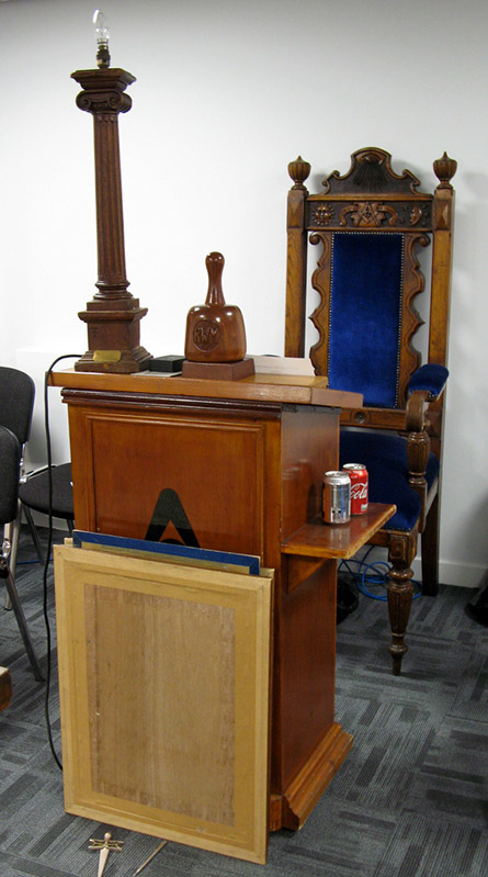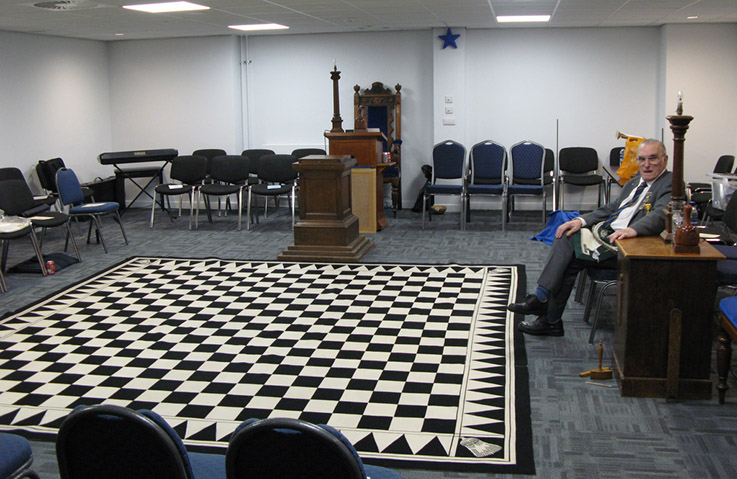 I did enter the Lodge room to take some photo’s as you will see, it was very plain and nothing out of the ordinary to see I’m afraid. We all waited in the corridor whilst the Lodge was opened then invited to parade in, several of us were in Mark Degree Regalia which is totally accepted in their Craft Lodge as that’s where Mark Masons are created. | |