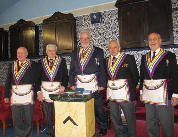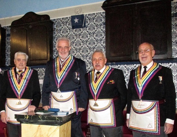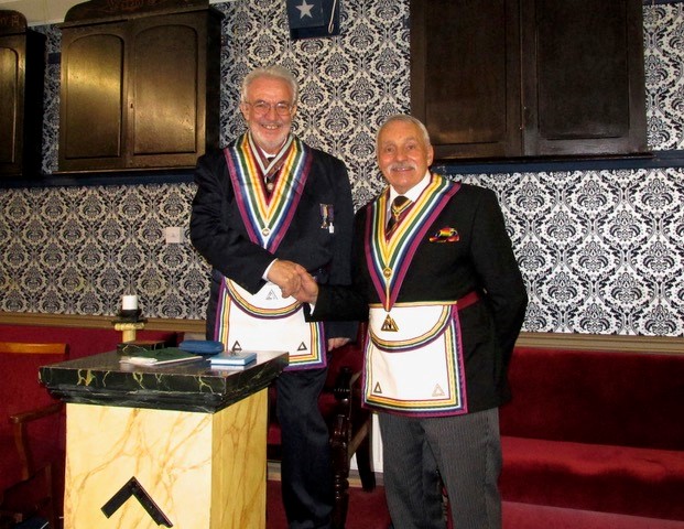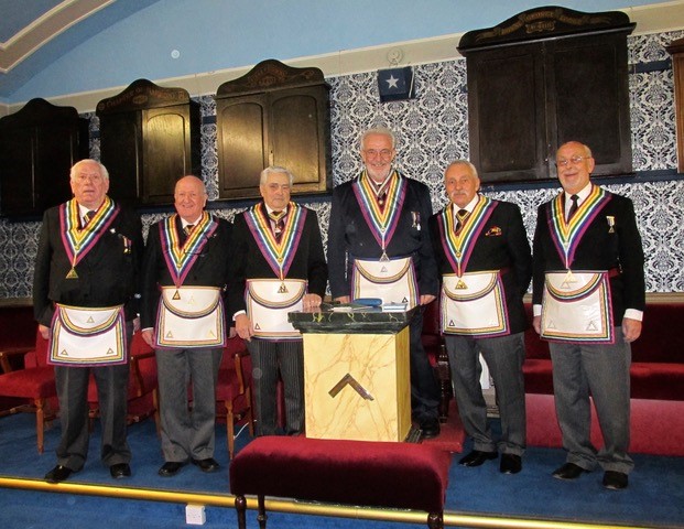 Bro Philip John Lyon, then invested his IPC David Buchanan Dixon as IPC, and then duly thanked him for his assistance in gaining the chair of St George Royal Ark Mariner Lodge 553. Following the closing of the Assembly of Installed Commanders, the Brethren were re-admitted into the Lodge. |