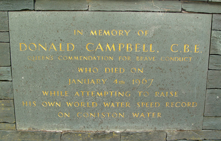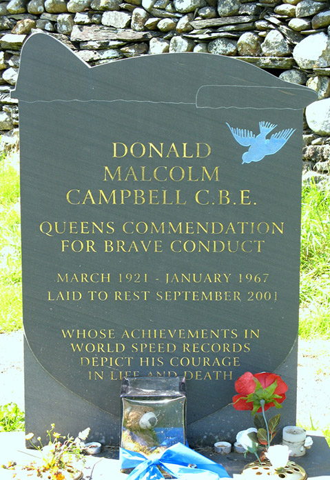 Before we left Coniston we visited another interesting church St Andrew’s thinking that maybe the grave of Donald Campbell may have been there, but alas it was not, in fact it was in another location down a side road in a quiet pleasant area which was in fact another well kept grave yard, I did think there would have been a large Headstone of some kind paying tribute to this special man but in fact it was quite a humble stone near to a wall, you could see that his grave was well remembered by the number of recent flowers which had been laid, near to the car park however there is a special memorial stone. |